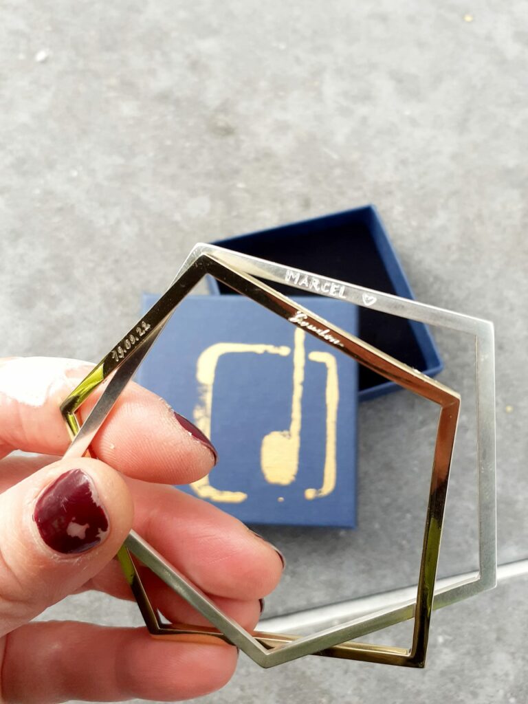 L’un en argent l’autre en laiton, leur forme particulière a permis de graver discrètement prénom et date de naissance de tous les enfants de la fratrie.